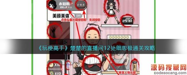 以上就是整理带来的抖音小游戏《玩梗高手》楚楚的直播间12处细思极通关攻略,更多关卡内容,请点击关注源码搜藏网!