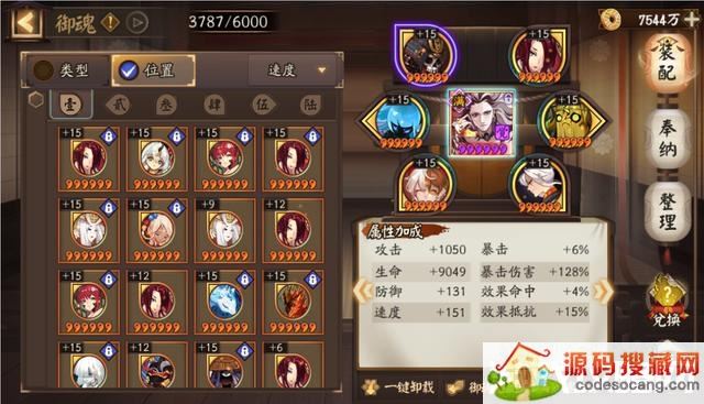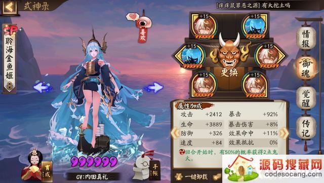 聆海金鱼姬:御魂招财,二号位速度,四号位攻击,六号位暴击。这个御魂既能打输出,又能奶。由于开局有鬼王酒吞童子的存在,不需要聆海金鱼姬那么高的速度,所以对速度的要求没有那么高。反而对治疗的要求高一点,所以六号位暴击。