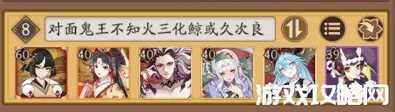 我方依旧四手翻牌聆海金鱼姬,五手选择孟婆或者阎魔。孟婆基础速度比鬼王酒吞高,对自己孟婆速度自信的玩家,孟婆会比阎魔开局更好打。如果是阎魔,就控制对面速度最快的化鲸,缚骨清姬选择不知火,让不知火提早进入离影状态,接下来优先解决对面鬼王酒吞童子。