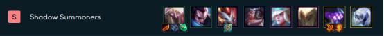 这套阵容以4影3召唤师羁绊为核心,搭配2剑士2云霄2秘术羁绊,阵容优势高费大哥多伤害足,缺点也是显而易见的,高费英雄多,成型慢,2大哥很难都2星。阵容前期可以给马尔扎哈装备,主要输出还是留给易大师。
