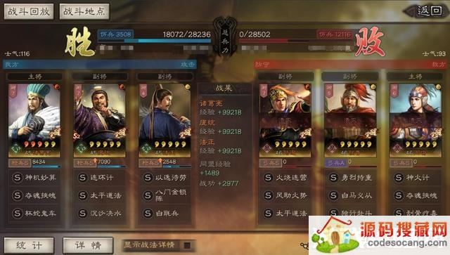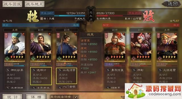 且右边太史慈和程普满红,兵力优势、士气优势、满红属性优势足以抵消5级的差距。