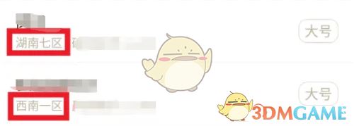 3、在打开的角色选择界面中,点击其他大区的角色昵称后面的大号按钮即可完成换区。