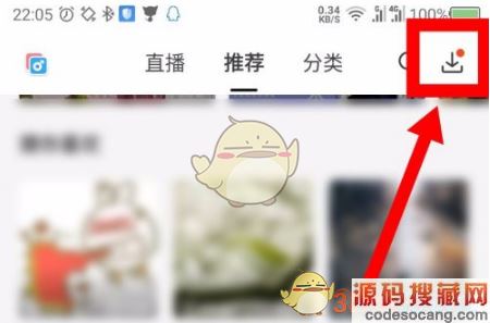 1、在猫耳fm首页点击右上角的下载箭头图标。