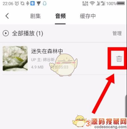 3、如果想删除下载的音频,可以点击后面的垃圾箱图标。