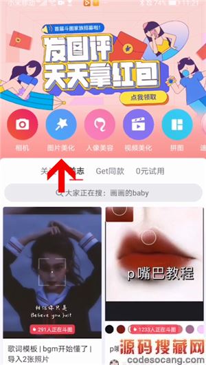 1、首先打开美图秀秀app,点击首页图片美化,