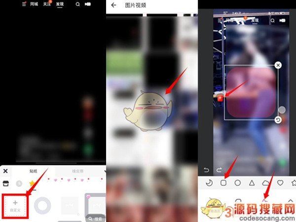 3、点击自定义体贴纸选项,点击选择第二张图片,点击形状工具。