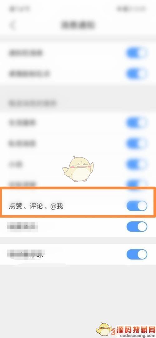3、选择下方如图的【点赞、评论、@我】右侧开关开启就可以了。