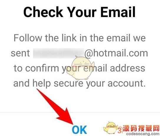 5、您将看到“检查您的电子邮件”提示。点击“确定”。