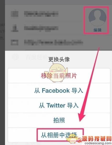 3、选择右上角的“编辑”按钮,从底部弹出的方框中选择“从相册中选择”这一项并点击进入下一步。