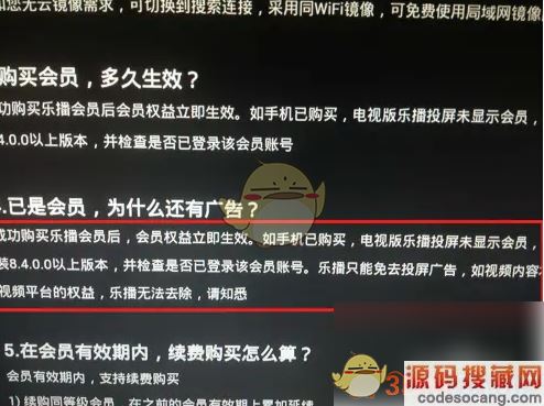 3、如果在已经开通会员后,在需要在投屏的设备中登录,才可以免广告,如果其他视频平台的权益,乐播无法去除