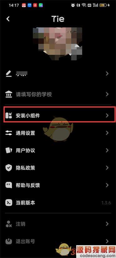 2、然后来到设置的页面之后点击【安装小组件】;