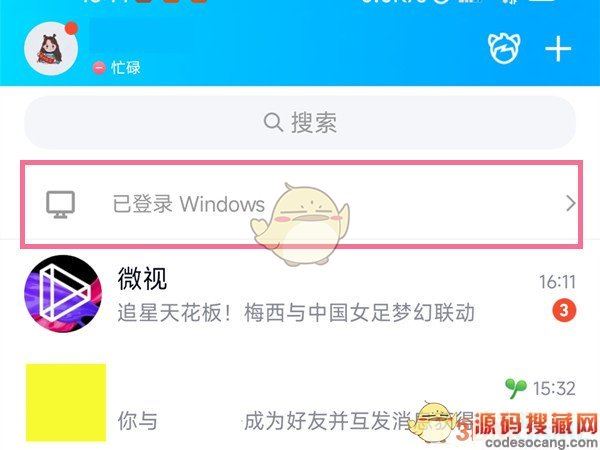 1、打开手机QQ,在消息页面,点击顶部已登录Windows。