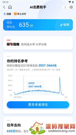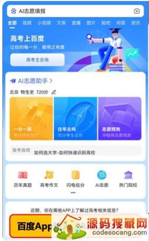 随着前几天高考的结束,广大高考学子即将迎来的是一小段美妙的假期人生,虽说出去旅游是一个很好的选择,但是也千万要注意防范疫情哦!还有一点需要大家注意,就是高考出成绩的日子,应该在本月的24-27号之间,出了成绩之后我们就得准备填报我们的志愿了。为了大家能够更好的找到适合自己的高校及专业,这里特地为大家准备了这款AI志愿助手2022下载,它是由百度专门为高考用户打造的一款高考志愿填报助手,其先进的AI分析算法能够帮助考生智能分析分数,科学选择报考专业,给考生提供了一种量化的参考,从而彻底解决考生和家长填志愿难题。软件为所有的家长及学生用户充分罗列了全国2600多所高校的详细介绍以及每个专业的亮点所在,真正做到让家长放心、考生安心!此外,AI志愿助手还为大家准备了闪电估分、热门院校、历年真题等功能,拥有众多名师直播辅导志愿填报等服务,全力为考生提供权威指导,为考生的志愿填报保驾护航。