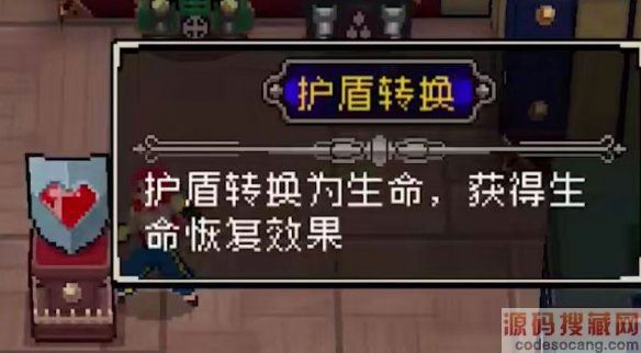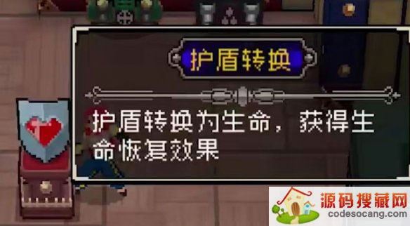 护盾转换为生命,获得生命恢复效果,生命转换的相反版本,个人认为没有生命转换好,虽然护盾可以回复而生命并不可以恢复,但是这个道具消除了爆盾效果,而且很多方法都可以恢复生命。