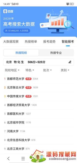 测录取概率 了解心仪院校录取难易度