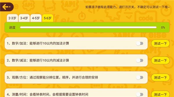 7、数学水平量表则是测试不同年龄段孩子的数学学习水平能力;