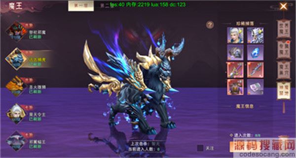玩家可以在这界面选择不同层次的魔王,查看魔王掉落物品、刷新情况、不同层次的魔王进入条件、魔王次数以及当前场景的人数情况。玩家不熟悉玩法的可点击玩法图标,打开玩法攻略,提升战斗技巧!需要提前知道魔王的刷新情况可勾选关注,魔王刷新前1分钟会提示你,让你更舒适的前往争夺魔王。