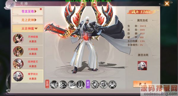2、玩家在获得对应的天神物品后,可激活形象,激活形象后可获得属性加成和主动技能。激活的形象可选择出战:可消耗物品、提升玩家等级进行解锁更多出战槽位。出战的天神可在场景中变身出战。激活后的形象可消耗3种材料提升阶,升阶后可带来属性战力,当阶级达到一定等级时可激活被动技能。
