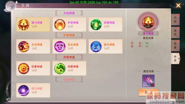 玩家可消耗对应神通的材料进行提升神通等级,带来属性!等级越高,属性越高