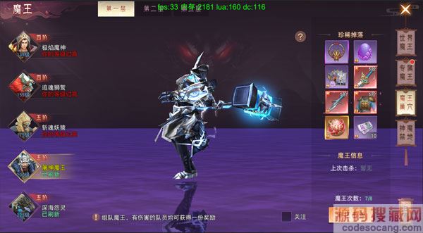 玩家可以在这界面选择挑战不同等级的魔王,查看魔王掉落物品、刷新情况、不同等级段的魔王进入条件及魔王次数。玩家不熟悉玩法的可点击玩法图标,打开玩法攻略,提升战斗技巧!需要提前知道魔王的刷新情况可勾选关注,魔王刷新前1分钟会提示你,让你更舒适的前往争夺魔王。