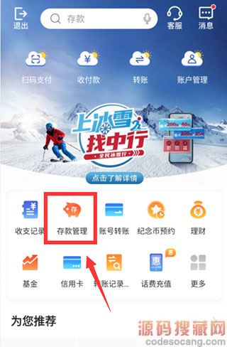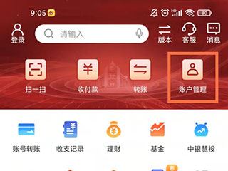 1、先登录中行手机银行客户端,在首页点击【账户管理】。
