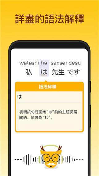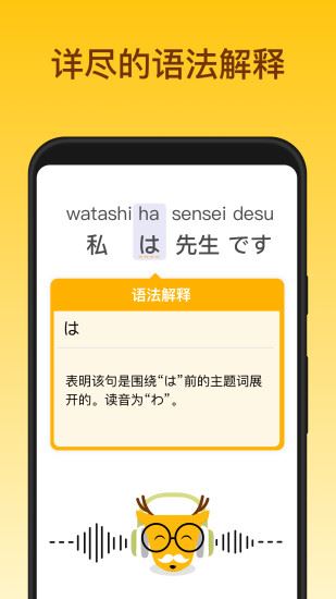 『鹿老师说外语』是一款由专业语言教师为初学者量身定制的小语种学习APP。汇集了日语、韩语、法语、德语、西班牙语、葡萄牙语等原创课程。每天只需20分钟,便可在游戏中轻松学习外语。有效的学习方法:- 各语言全面透彻的『发音介绍』,手把手教你写日语假名和韩语字母,为你的学习打下坚实基础。- 名词阴阳性、动词变位、敬语非敬语太难了?资深语言老师了解外语学习的每一个困惑,针对各个语言进行特别的『难点突破』,让你不再迷茫。- 简单到不能再简单的『语法总结』。告别复杂的术语,没有老师也能看懂!- 每一个词都有详细的语法『解释和例句』。不再需要反复查词典和语法书。- 担心无法开口说?每单元结束后的『情景故事』,将所学内容放到实际生活中,通过配音练习让你应答如流。- 声优级『母语者』发音,为学习者呈现*合适的语速,*悦耳的音质。便捷的学习过程:- 10多种妙趣横生的『练习模式』,在不知不觉中学习单词语法。- 6种不同的『复习机制』,自定义复习内容和数量,保证学习效果。- 用『抽认卡』高效背单词、记忆知识点。- 支持『离线学习』,让你随时随地提升自己。- 每天都可以在固定时间启动『学习提醒』,养成学习的好习惯。