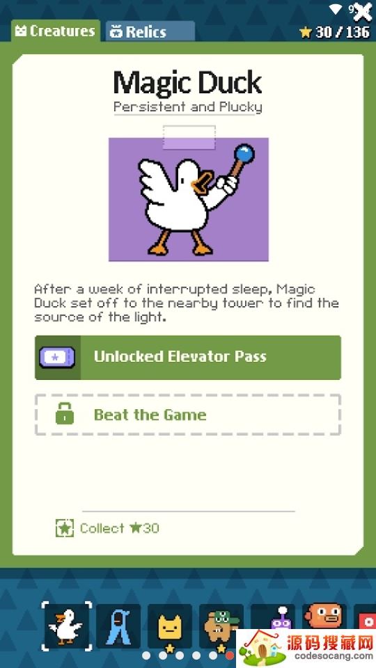 魔术鸭上线了,帮助 Magic Duck 在每晚都照亮他的池塘并打断他睡眠的神秘塔上奋勇前进。与可怕的敌人作战,发现新的遗物,揭开塔的秘密,并一劳永逸地关掉那盏灯!