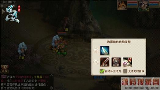 如上图所示,当自动模式启动时,玩家只需将手机放在一旁,点击右下“角色”和“宠物”图标,设置好角色和宠物将要施展的技能(见下图),系统就会自动开启战斗啦,当玩家的背包有“血玲珑”和“法玲珑”等道具时,系统也会自动根据实际情况判定,并使用道具的。此时若点击右下“取消自动”,则会进入手动战斗模式。总体来说,自动战斗确实是省时省力。