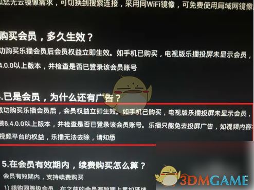 3、如果在已经开通会员后,在需要在投屏的设备中登录,才可以免广告,如果其他视频平台的权益,乐播无法去除