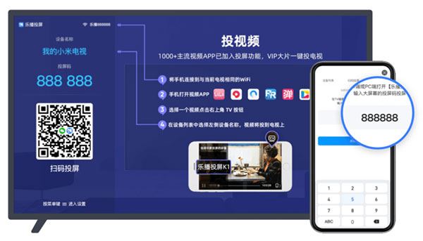 1、支持扫描连接投屏,手机扫描电视里的乐播投屏二维码,快速建立连接,让你快点投屏。