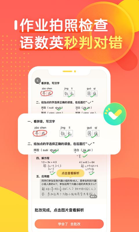 作业一拍,秒出解析,手机拍题,秒判对错节省时间,提高效率,家长辅导作业好帮手