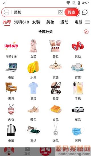 6、在分类当中,包括了美妆、运动、家装、男装、手机等品类,满足你购物需求。
