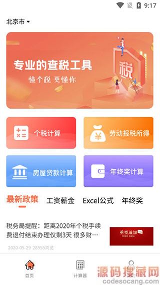 1、先打开app,根据自己的需求选择合适的计算方式,大家也可以在这里,查看到最新的政策、工资薪金等。
