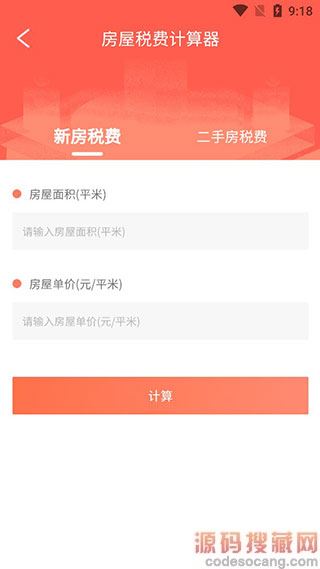 4、大家也可以使用app,去计算房屋税,根据自己买房的类型,选择新房税费或者是二手房税费,依次输入房屋面积以及房屋单价等,即可进行计算,