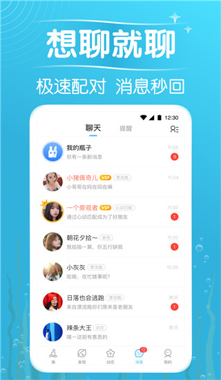 遇见漂流瓶App是由北京快看阅读科技有限公司打造的一款漂流瓶交友软件,功能上软件是围绕着漂流瓶社交而展开的,漂流瓶大家都知道,那是一个没有明确目的地的瓶子,就是任何人都可以捡到,说不定你所诉说的一句话便和其他人产生共鸣哦,毕竟世界之大有和你差不多的也是非常正常的。至于安全性方面,用户们尽管放心使用,在遇见漂流瓶App的用户们发言都是匿名状态下的,当然啦如果想知道的对方信息的话,那也只有通过自己和对方的关系达到一定程度上才可以哦,并且信息是双向的即对方知道你的你也知道对方呢,因此用户们的信息安全上是可以得到全面方面保护的呢。而对遇见漂流瓶app这款软件中的服务感兴趣的朋友们,可不要错过呢。
