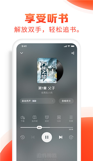 追书神器app专注免费小说的更新神器 。全网百万小说免费随便看,玄幻奇幻、都市言情、武侠仙侠、青春校园、穿越架空、惊悚悬疑、历史军事、耽美同人等各类小说应有尽有,你想看的我们都有。更重要的是阅读全程无广告,阅读体验一级棒,小编强烈推荐的小说阅读器。高人气互动社区,众多知名作家定期做客,时时开帖与粉丝互动,还有各类小说大触倾心吐槽,快速求书、自由评论畅聊书海,以文会友。此外更能自由创建书单功能,好书一键分享你我他!更有集吐槽书评交友等诸多的高级功能,超好用的网文电子书小说追更新神器!更新快、小说多、免费看,简单易用!