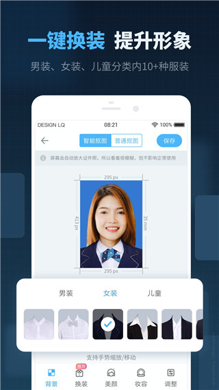 智能证件照app2022最新版 v4.8.5安卓版42.29MB1100人在玩智能证件照app2022最新版是一款非常好用的手机拍摄美化软件。这款软件主要是提供给用户进行美化照片作用的,很多时候用户面试或者是其他场合的时候,都需要各种尺寸或者是底色的证件照这种时候就很麻烦了。这款软件能够帮助用户解决这个麻烦,软件能够提供过制作剪切自己一次生成多种规格的照片,并且可以直接使用,不管是什么要求都能够完成。并且可以不管是换底色还是换衣服,都可以使用软件智能合成