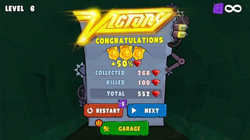 每个关卡通关后,玩家们都可以获取到钻石奖励,奖励包括关卡中获得的钻石和击杀车辆奖励。