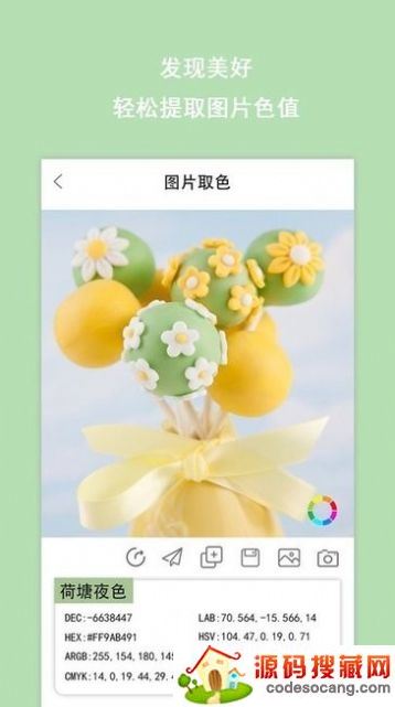 2、取色成功后软件能够自动识别颜色为你提供色彩参数,适用范围非常广泛;