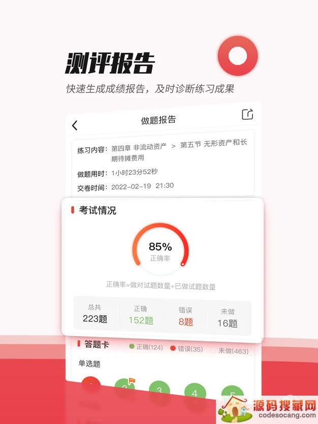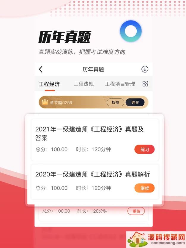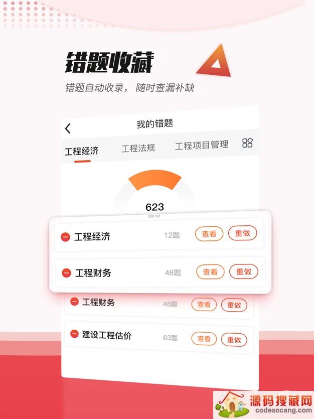 焚题库是一个专业的职业考试辅导软件。主要提供各种职业考试的考试资讯、复习资料、历年真题。目前开展的辅导已涉及建筑工程、财经会计、医药卫生、职业资格等大类百余项考试。网校拥有一大批全国权威的辅导专家,在他们周围,网校数百名辅导名师组成专家团队,一年又一年为考生提供最新的考试动向及培训