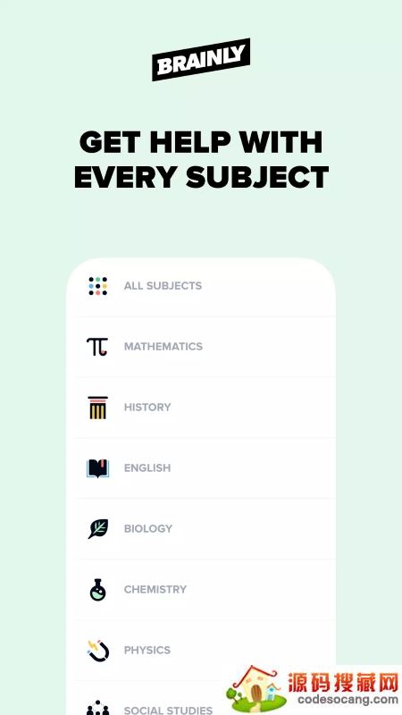 Brainly帮助所有学校科目,包括。数学、历史、英语、生物、化学、物理、社会研究、高级课程(AP)、地理、健康、艺术、商业、计算机和技术、法语、德语、西班牙语和世界语言。