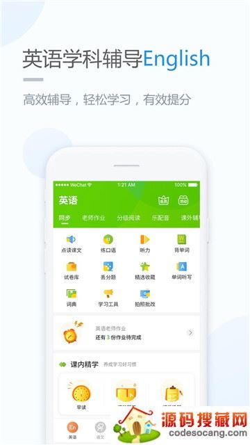 课本点读、练口语、考试测评、早读课程、课前预习、课后巩固、阅读训练、语法训练、听力训练、每日英语、老师作业、丢分题、精选收藏、听力、欧美课程、学习工具、乐配音、乐配音测评、词典