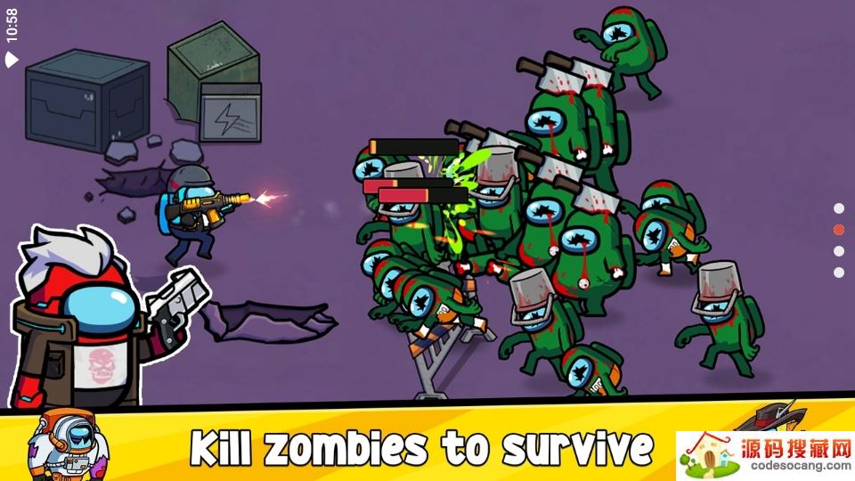 狩猎并杀死一群僵尸钱从他们身上掉下来!收集越来越多的硬币来购买火箭,并升级你的武器以使其更强大。