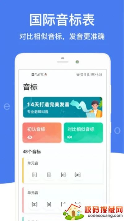 英语音标app是一款最新的英语学习软件,帮助同学们属性每个单词的发音和朗读,让你快速学习英语基础,需要的朋友一定不要错过哦!