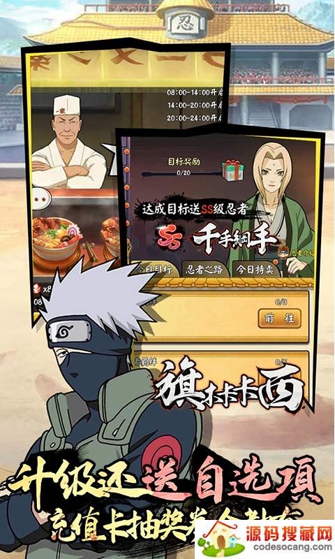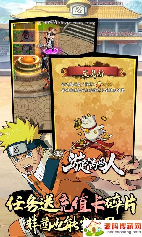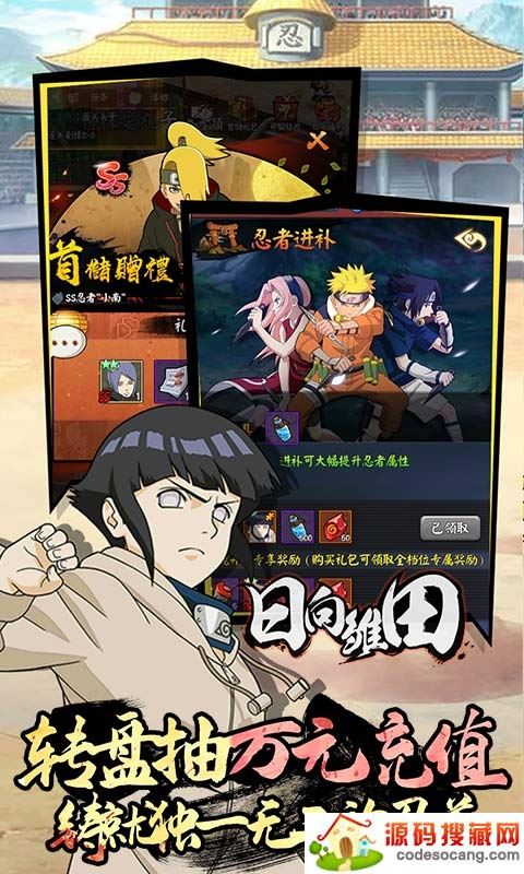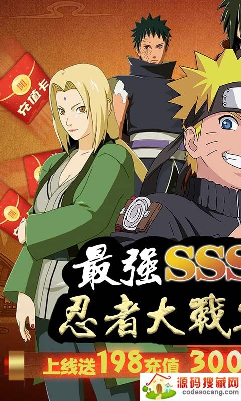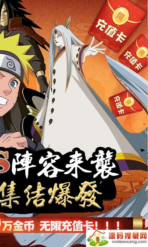 1、正版火影动漫授权;上线送198元真充值卡,使用既得99000钻石、300万金币、直升VIP10;