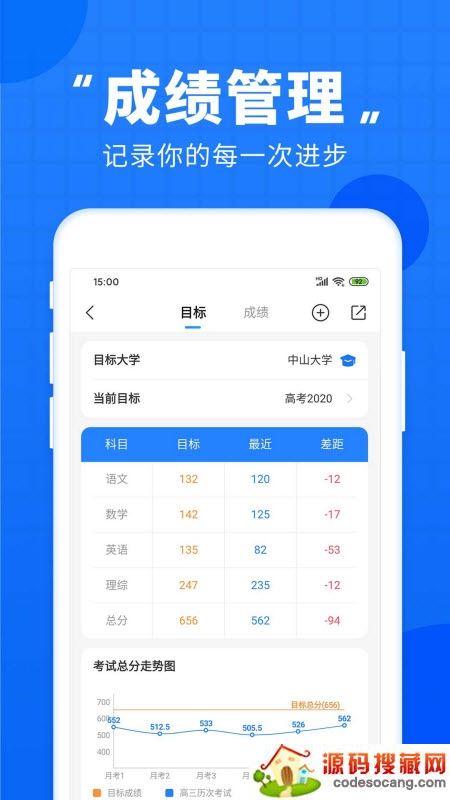 记录每一次模考、月考、周测、统考成绩,制定考试目标,清晰展示每一次的考试差距。系统智能成绩分析,帮你快速找到学习症结所在,查漏补缺!