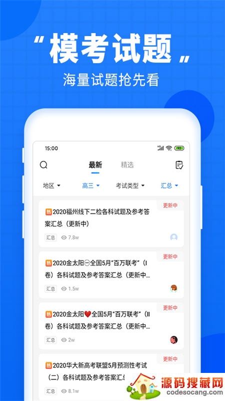 高考全国卷、北京卷、江苏卷、上海卷、浙江卷、天津卷、百校联考、A10联盟、省统考等海量高考模考答案快速更新,免费下载,在线对答案!