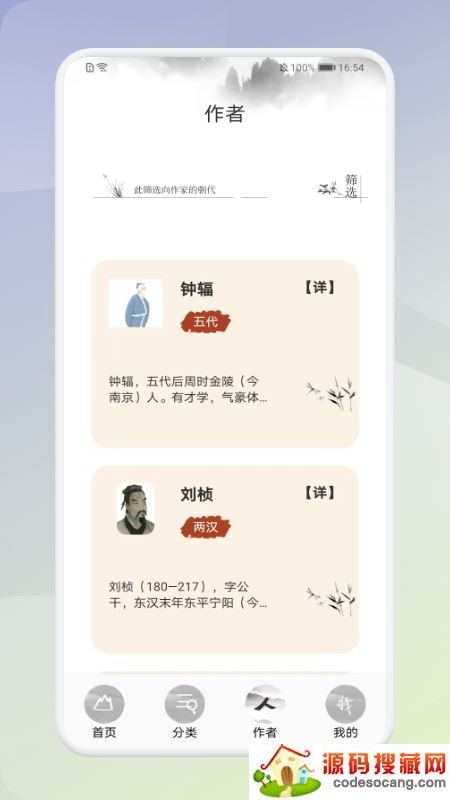极简的时代分类模块,根据朝代进行分类查找,非常体贴;