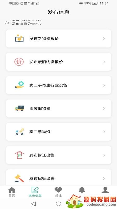 可以随时在线上发布货物信息,无论是二手货源还是拆迁货源,废旧货源等都能够轻松看到。