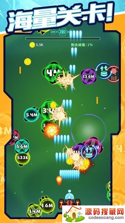 1、消灭病毒自由射击,玩家将体验到更多的游戏精彩和乐趣。